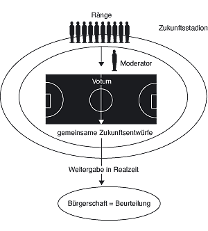 Beitrag liefern möchte, hat also etwas mit Informationsverarbeitung und Wissensmanagement, im weiteren Sinne mit Kommunikation zu tun. Das hat für mich einen direkten Bezug zur Zukunft, zu deren Vorhersage, Deutung, wie auch Gestaltung. Eine Sache, die ich während meiner Arbeit gelernt habe, ist, dass es nicht so sehr auf die eigentlichen Resultate ankommt. Viel wichtiger als die Entwicklung und rigorose Durchsetzung von Zukunftskonzepten ist es, Entwicklungsprozesse mit eingebauten Rückkopplungsschleifen in Gang zu setzten und die Leute, die es betrifft, mit in diese Prozesse einzubeziehen. Es ist doch interessant, dass der Begriff "Rückkopplung" die Wurzel des Wortes "Religion" bildet