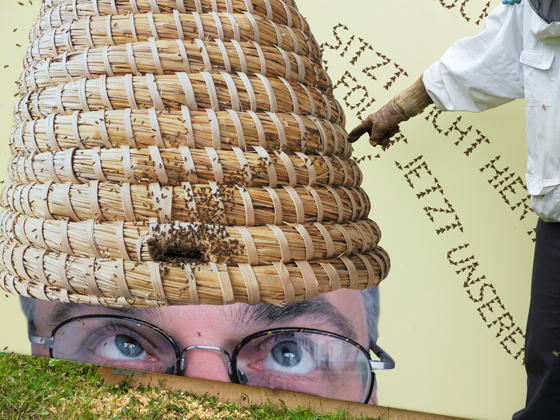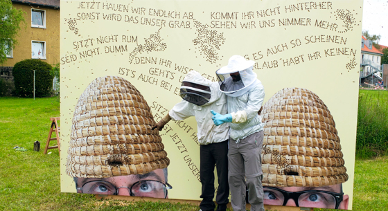 Die Künstlergruppe finger überträgt diese Umkehrung auf den Lorscher Bienensegen und lässt 2012 - anstelle des Imkers - "die Bienen" zu Wort kommen.