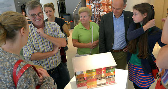 | Das Modell des Frankfurter Bienenhauses im Foyer des MMK |